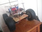 - Sistem deplasare: 4 servomotoare standard modificate pentru rotatie continua conectate la roti de automodel pentru off-road.