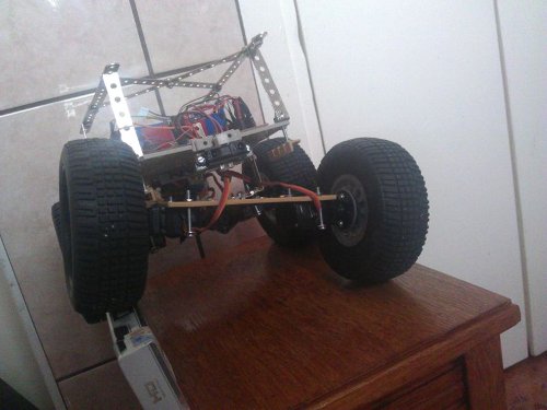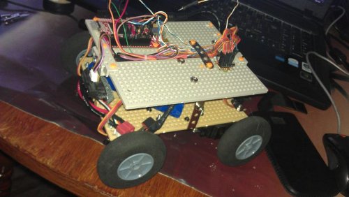 - Sistem deplasare: 4 servomotoare standard modificate pentru rotatie continua conectate la roti de automodel pentru off-road.