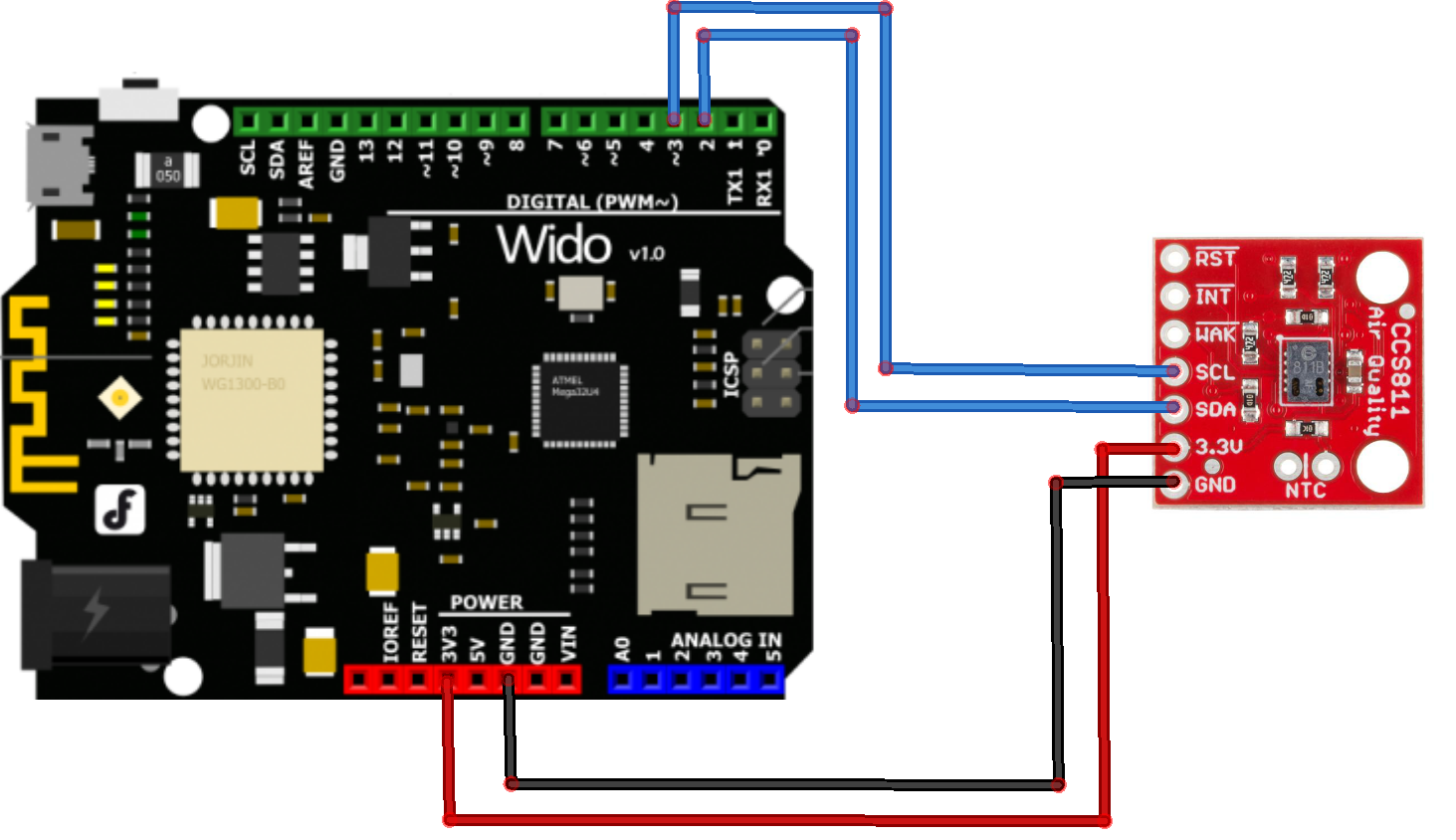 Programul a fost dezvoltat și testat utilizând Arduino IDE 1.8.3 și bibliotecile SparkFun CCS811 1.0.0 și o versiune modificată a bibliotecii Adafruit CC3000 – special pentru placa de dezvoltare WiDo-WIFI. Placa se va programa în Arduino IDE ca o placă Arduino Leonardo obișnuită.