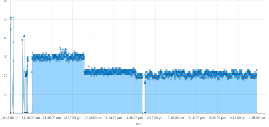 if (val < 16) { val = 0; } if (oldVal != val) { if (oldVal == 0) { iotUpdateTime = millis(); sendIOT(oldVal); sendIOT(val); } if (oldVal != 0) { if ((millis() - iotUpdateTime) > 60 * 10000) {